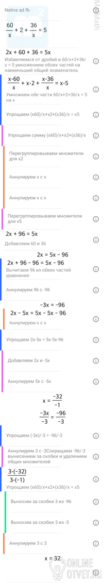 ПОЖАЛУЙСТА И ПОБЫСТРЕЕ:Решить уравнение 60/х+2+36/х=5