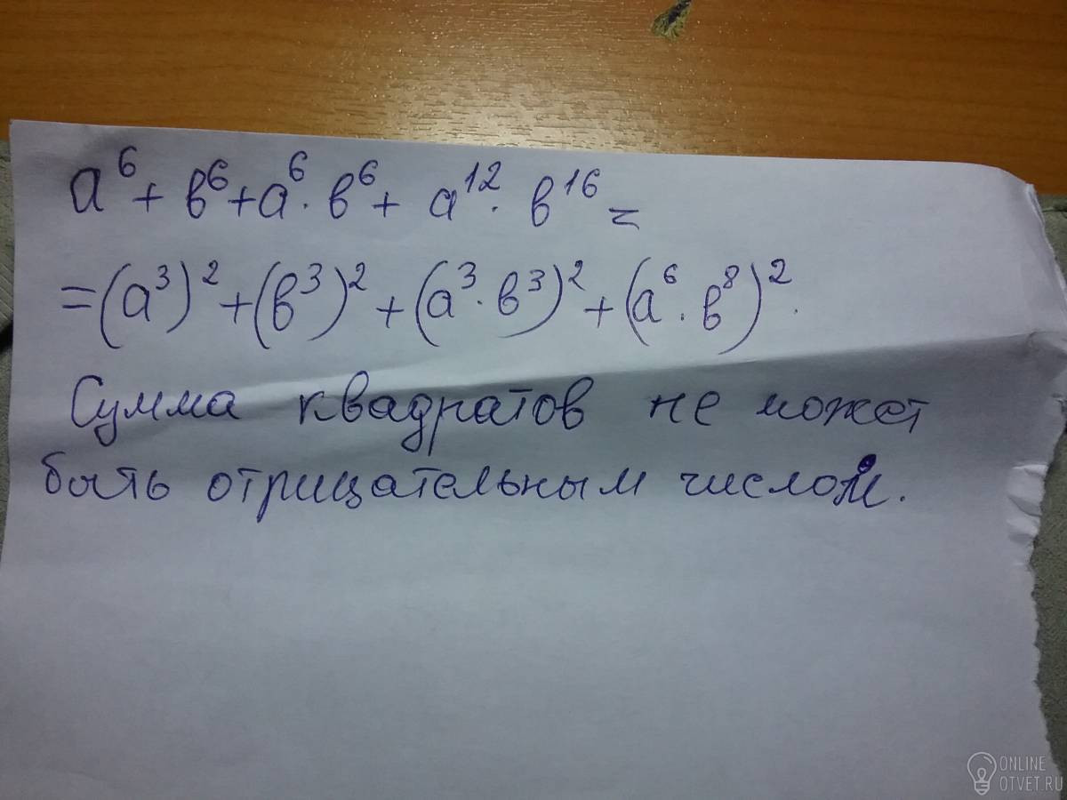 Докажите, что не может быть отрицательным числом значение многочлена a^6+b^6+a^6×b^6+a^12×b^16 помогите, пожалуйста, срочно! заранее спасибо
