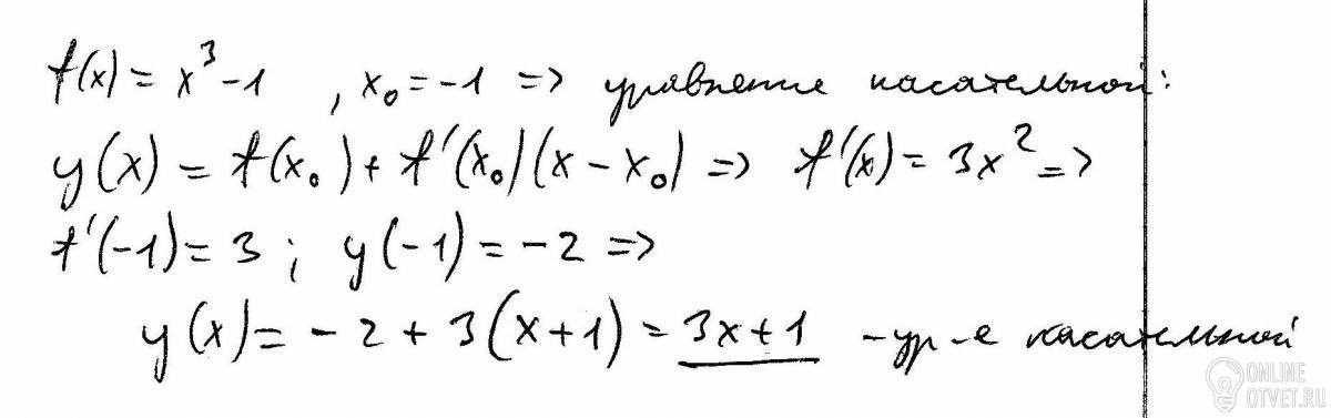 Написать уравнение касательной к графику функции f(x) в точке с абциссой x0 f(x)=x^3-1 , x0=-1