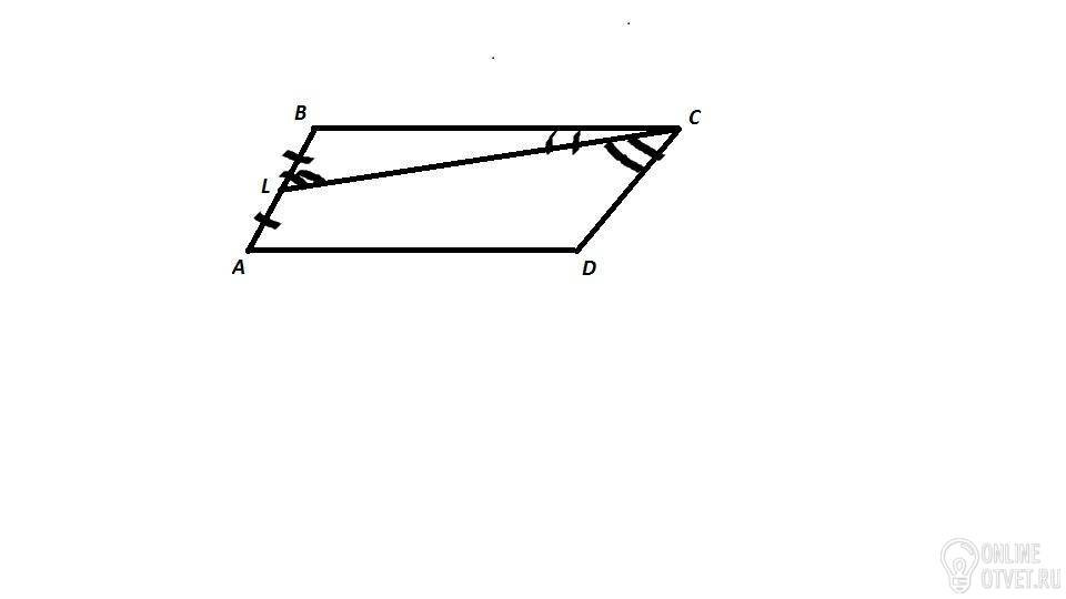 Сторона AB параллелограмма ABCD вдвое больше стороны BC. Точка L — середина стороны AB. Докажите, что CL — биссектриса угла BCD.