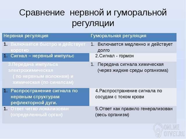 1. Общее: нервная и гуморальная регуляторные системы дополняют друг друга, образуют функционально единый организм, что обеспечивает высокую эффективность нейрогуморальной регуляции, ставит её во главе систем, согласующих все процессы жизнедеятельности в многоклеточном организме.