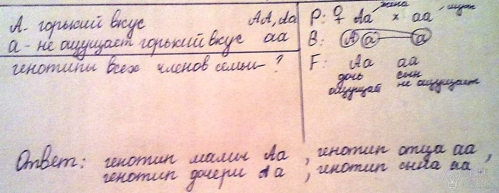 способность человека ощущать горький вкус-доминантный признак.В семье мать и дочь ощущают вкус, а отец и сын нет.Определить генотипы всех членов семьи.