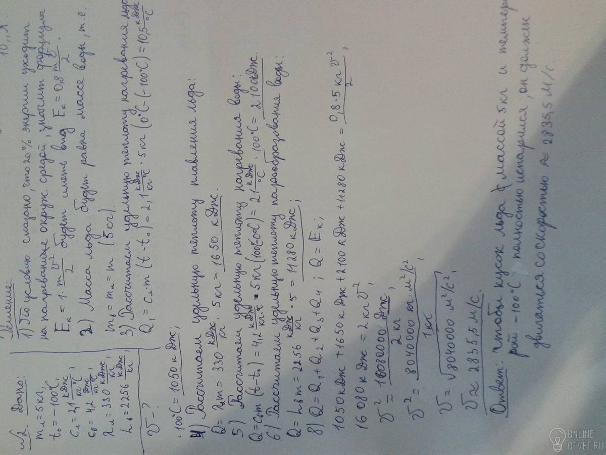 С какой скоростью должен двигаться кусок льда массой 5 кг и имеющий изначально температуру -100С чтобы полностью испариться? Известно что 20% энергии уходит на нагревание окружающей среды
