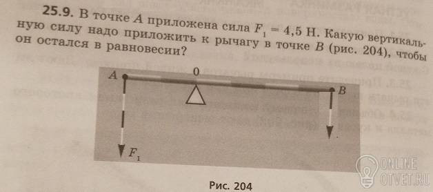 Поскольку плечо ОВ больше в 2 раза, чем плечо ОА, то силу надо приложить в 2 раза МЕНЬШЕ! F₂ = F₁/2 = 4,5/2 = 2,25 Н