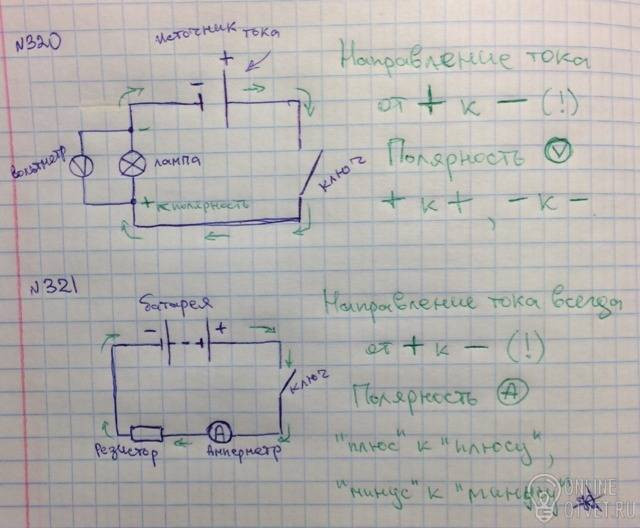 Запомни, что электрический ток всегда идёт от плюса к минусу. Ниже схемы: