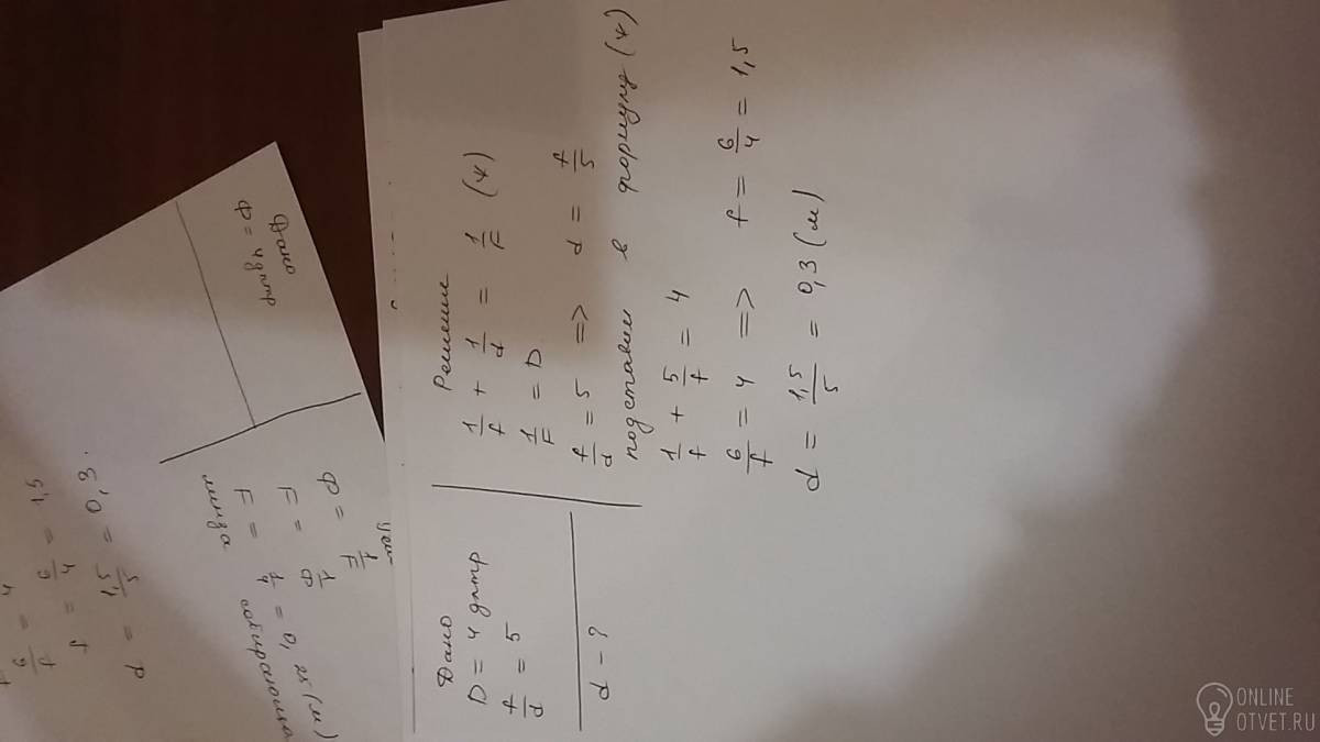Оптическая сила собирающей линзы 4 дптр. на каком расстоянии от линзы следует разместить предмет, чтобы его изображение было в 5 раз больше предмета?