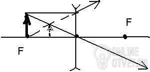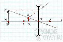 №2. линза рассеивающая. d=2F. Изображение мнимое, прямое, уменьшенное.