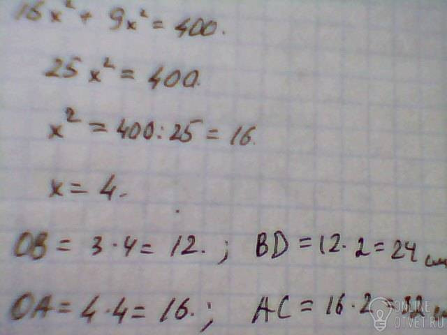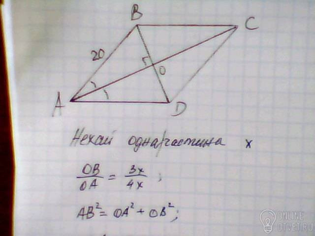 Кожна сторона ромба 80/4=20 см. половинки діагоналей ромба також відносятся як 3 до 4.Далі на фото