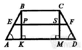 Теперь найдем площадь трапеции: S=((BC+AD)/2)*BK=((6+14)/2)*3=10*3=30