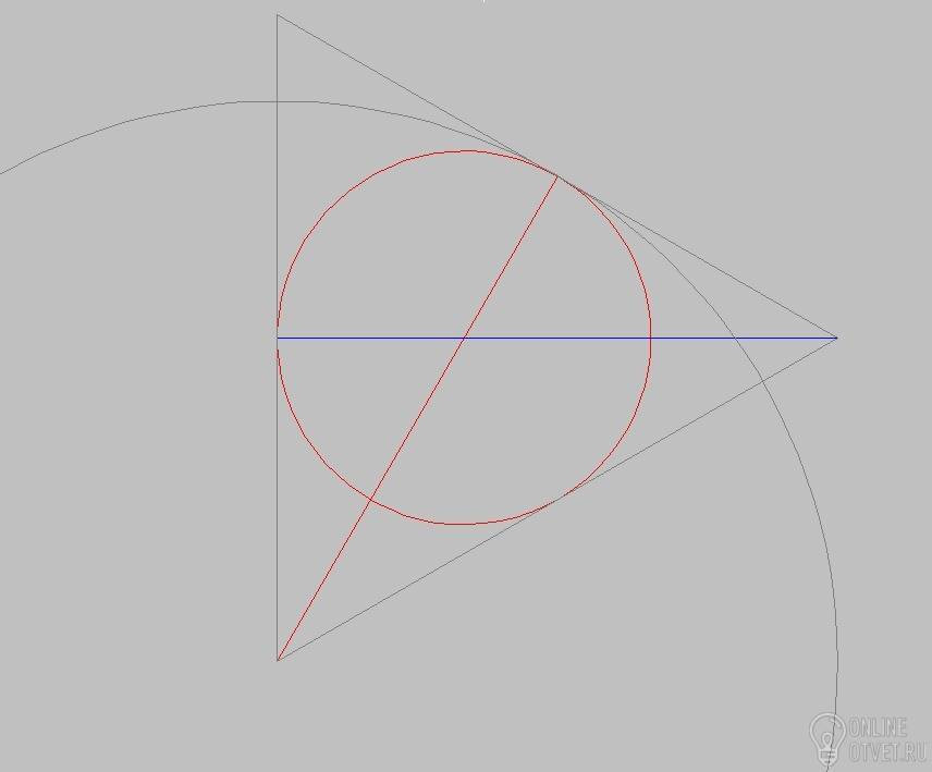 И радиус дочерней окружности равен 1/3 от высоты или от радиуса исходной окружности