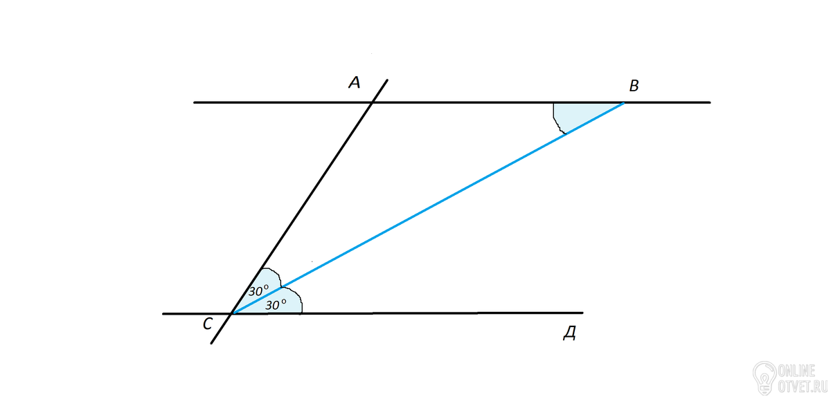 Получился треугольник АСВ, в котором ∠АВС = ∠ВСД как накрестлежащие.