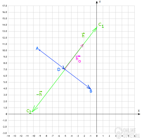 Откладываем этот вектор в разные стороны (+\-) от точки D( -5, 7 ) и получаем: