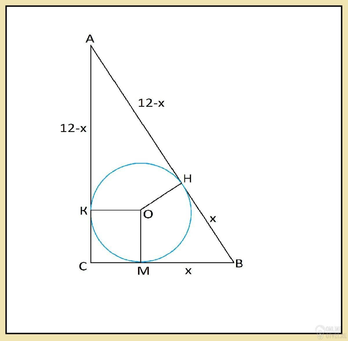 Тогда ВН=х, а АК=АН=12-х