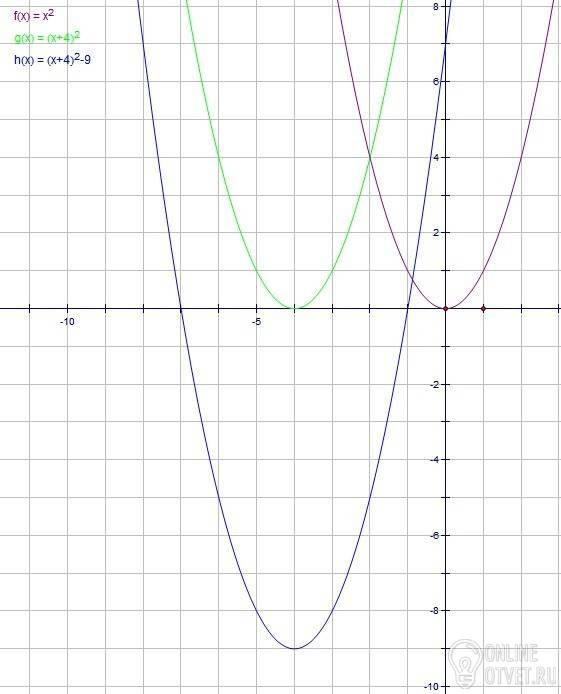 2) Сдвигаем её на 4 единицы влево вдоль оси Ox.