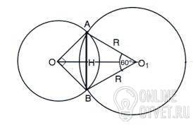 В ∆ АО1В угол АО1В-60°, следовательно, ∆ АО1В равносторонний и хорда АВ=АО1=R.