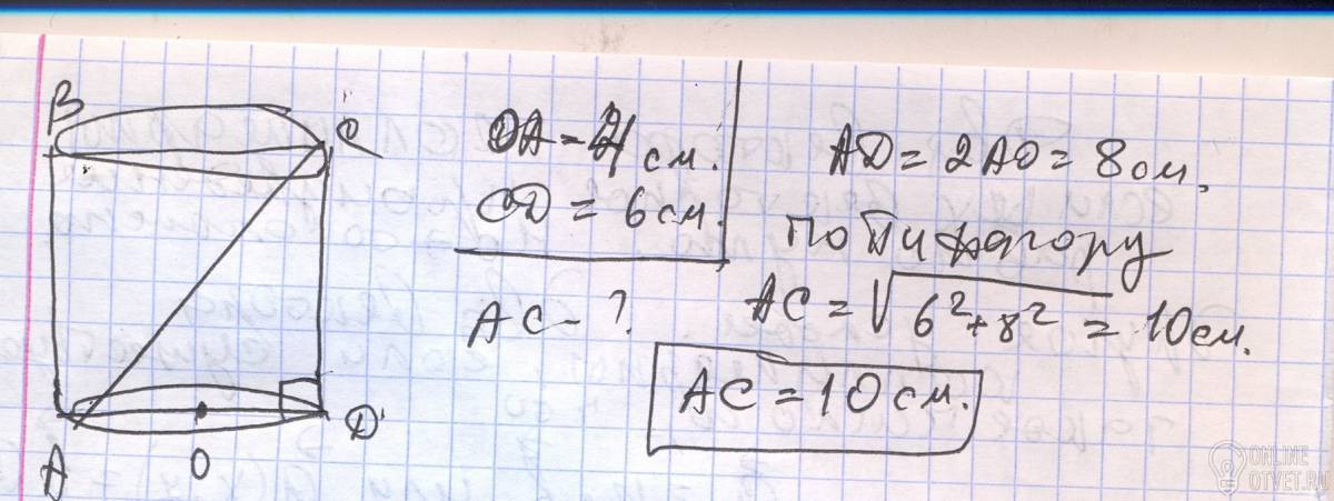 Радиус основания цилиндра 4 м, высота 6 м, найдите диагональ осевого сечения