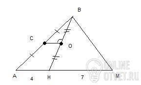 3. Треугольники СВО и АВН подобны по второму признаку подобия: две стороны одного треугольника пропорциональны двум сторонам другого и углы, заключенные между этими сторонами, равны. В нашем случае:
