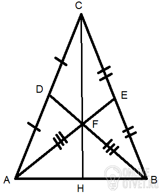точкой пересечения медианы треугольника делят себя на отрезки в отношении 1:2, поэтому если медианы AE и BD равны, то AF=BF. Значит треугольник AFB является равнобедренным, проведем из точки С медиану CH на сторону АВ. Она пересекает две другие медианы в точке F. Т. е. AFB равнобедренный, FH - высота, значит и CH - высота, а медиана является высотой только в равнобедренном треугольнике