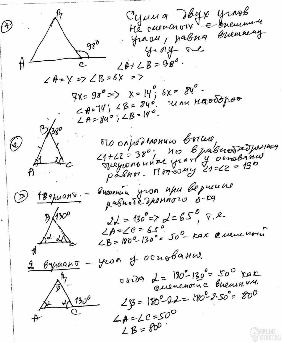 3)внешний угол равнобедренного треугольника равен 130 градусам. найдите углы треугольника. сколько решений имеет задача