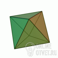 Если длина ребра октаэдра равна а, то площадь его полной поверхности (S) вычисляется по формуле: