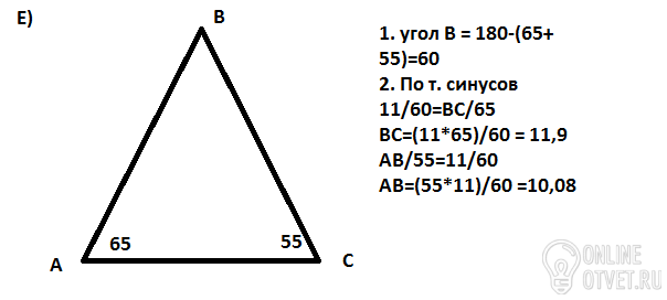 Только е решила. Остальное подумать надо. Если что скину. Единственное, у чисел 55, 60 и 65 нужно вычислить синус и на него умнажать, а не на сами числа