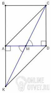 ∠AMK=∠DMC (вертикальные углы), AM=DM