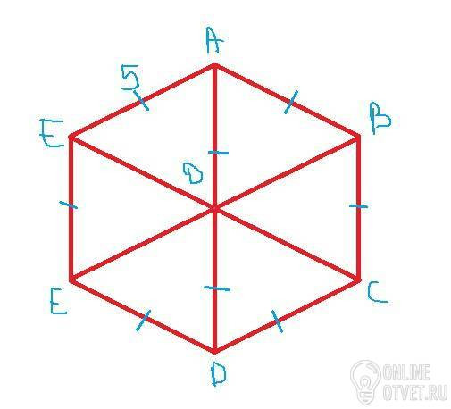 При проведении диагоналей получается 6 равносторонних треугольника. Получается что AD=AO+OD=2a=2*5=10