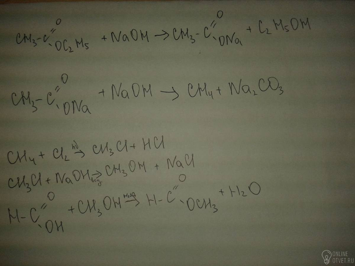 Осуществить реакции этилацетат-ацетат натрия-метан-метилформиат.
