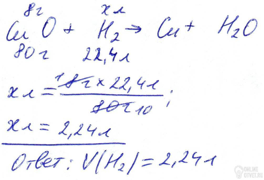 Ответ на "Какой обьём водорода при н.у. потребуется для восстановления меди из оксида меди (II) массой 8 г?":