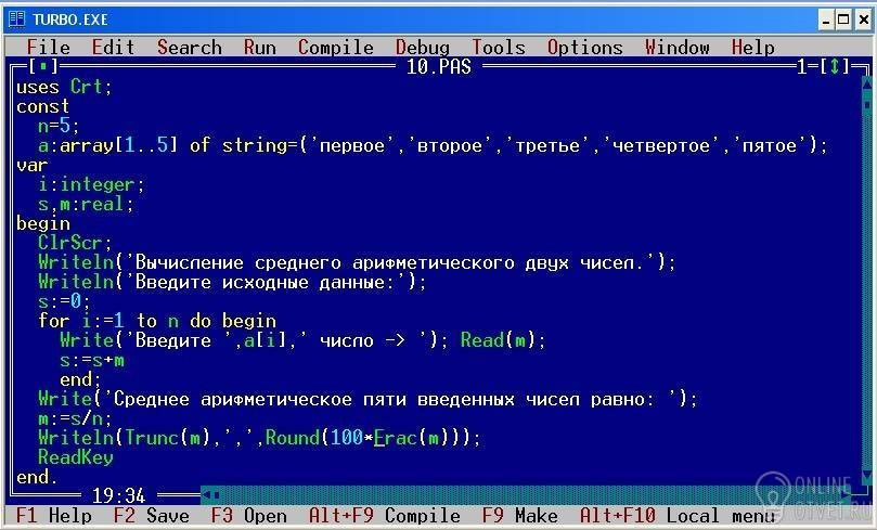 Writeln('Вычисление среднего арифметического двух чисел.');
