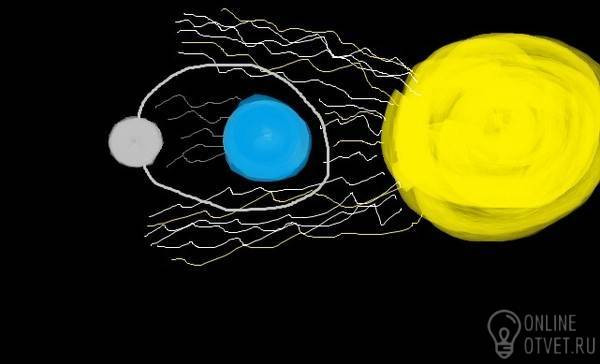 На этом фото земля изображена в виде атомного ядра водорода, а Луна – его электроном. Когда они расположатся в порядке, изображенном на моем рисунке, тогда и будет наблюдаться лунное затмение.