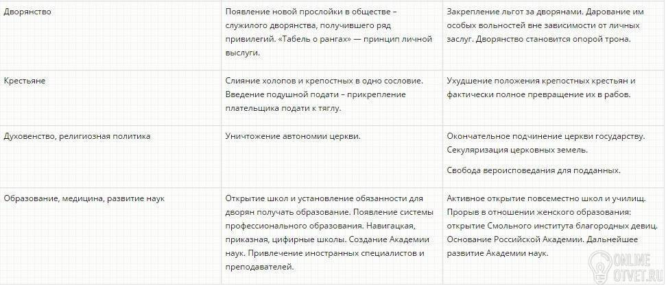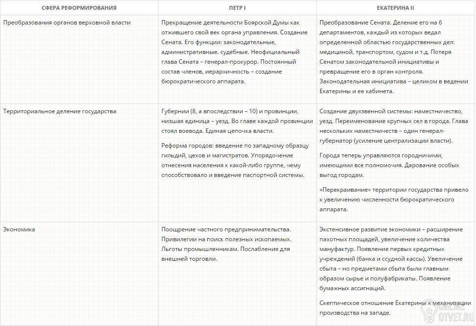 Сравнительная таблица Губернские реформы Петра 1 и Екатерины 2