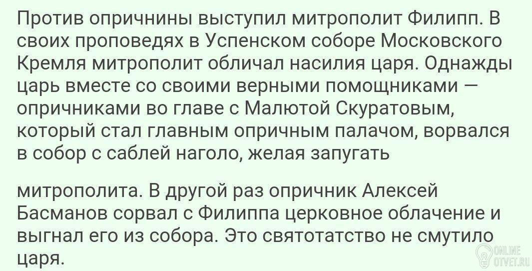 В успенском соборе Московского Кремля Митрополит Филипп обличал насилия царя Ивана Грозного
