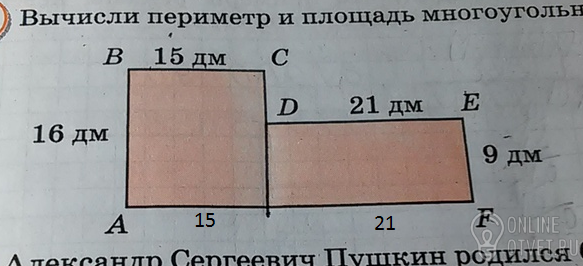 S=(AB·BC)+(DE·EF)=16·15+21·9=240+189=429 кв дм