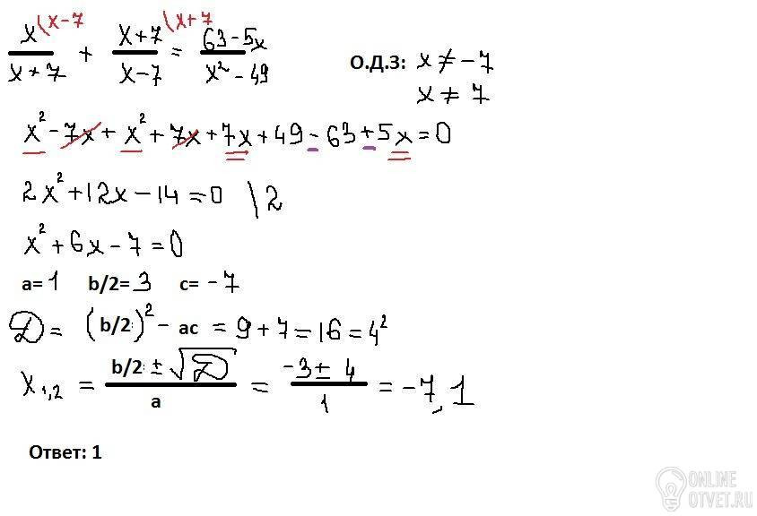 Благодаря О.Д.З, мы выписываем один ответ (-7 - посторонний корень)