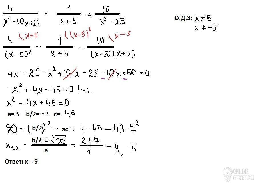 5) получается два ответа, но ты не должна забывать про О.Д.З, которые я тебе выписала исходя из знаменателя (на ноль делить нельзя)