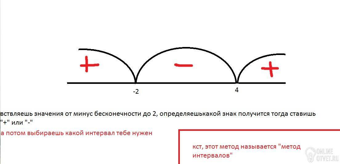 Находишь нули функции (приравниваешь к нулю), отмечаешь ответы на координатной прямой,